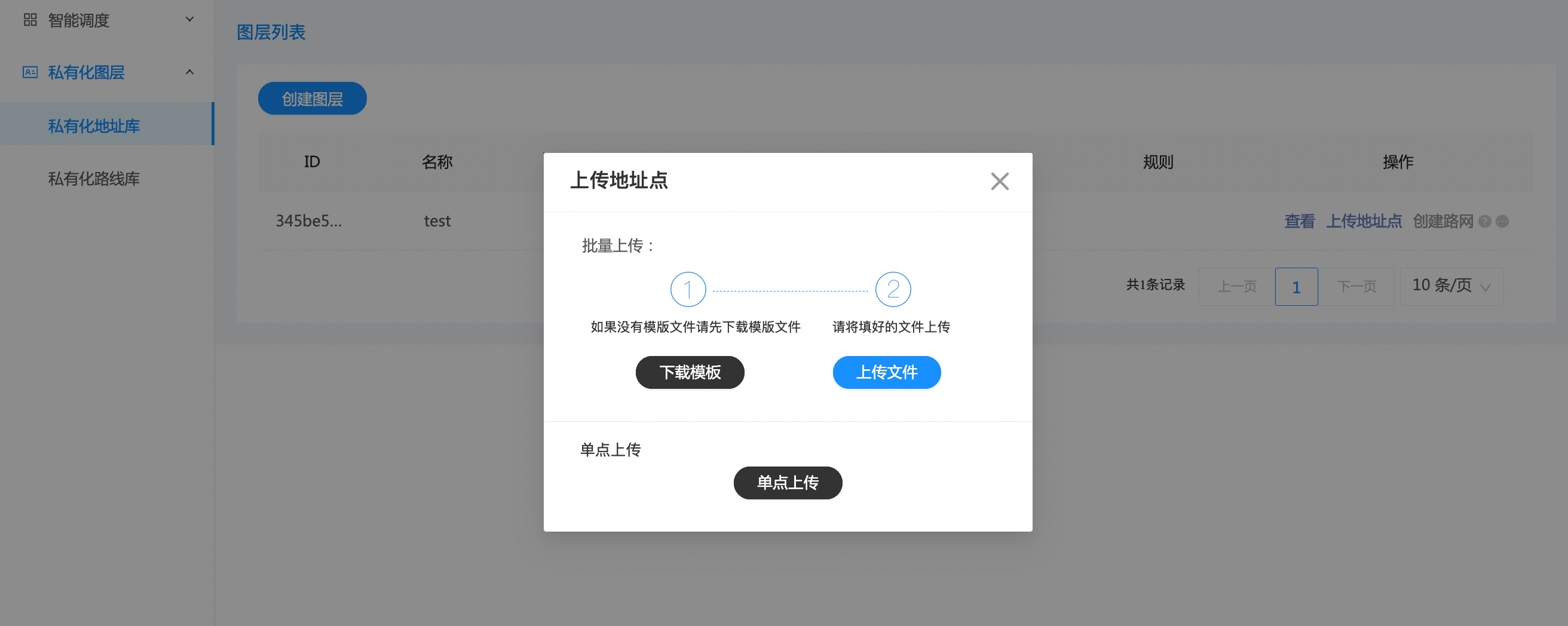 2.上传地址点:可以上传单个地址点,或者用Excel模板的形式批量上传。